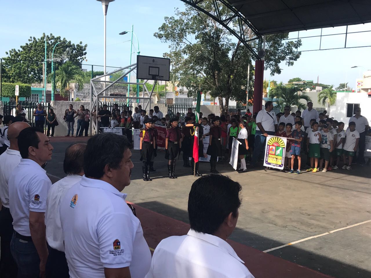 Luis torres en representación del presidente municipal de Othón P. Blanco, acompañado del director de Deportes Carlos Palma Tamay, participaron en la inauguración de los Juegos Deportivos Escolares del ciclo 2017-2018.