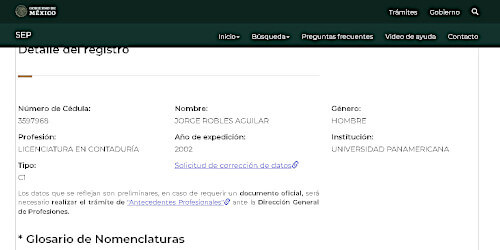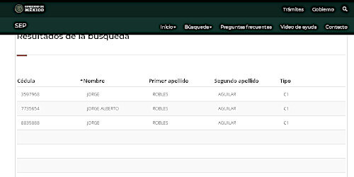 Aquí las capturas de pantallas de los 3 profesionistas homónimos de Jorge Robles Aguilar. Ninguno de ellos es licenciado en derecho: