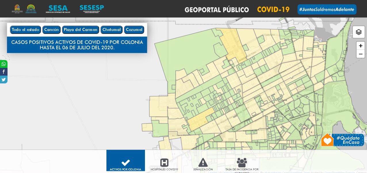 El mapeo general de la ciudad de Cancún fue proporcionado por el Gobierno del Estado a través de la Secretaría de Salud (SESA) y el Secretariado Ejecutivo del Sistema Estatal de Seguridad Pública (SESESP).